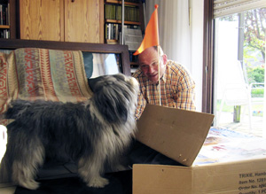 Wenn so etwas Unvorhergesehenes passiert, schießt mir sofort der Name Rainer durch den Kopf. Und richtig: gegen Mittag rief mein Freund an und erkundigte sich ganz nebenbei, ob Mio denn schon ein Paket bekommen habe. Er bat mich, mit dem Auspacken noch bis zum Abend zu warten, denn er sei auch ganz schrecklich gespannt, was es denn damit auf sich habe.