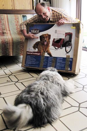 Aber - zieht der Hund den Anhänger oder kommt der Hund gar in den Anhänger? Fragen über Fragen...