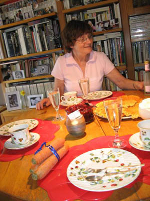 Dann hat Frauchen mächtig in der Küche rotiert und ich ahnte, dass da noch was kommen würde. Und richtig, ich hörte ein Motorrad vor unserem Haus anhalten und mein Freund Rainer klingelte an der Tür. Er hatte ein Päckchen in der Hand und drei Supermöhren. Ganz für mich alleine. Und dann hielten wir einen fröhlichen Geburtstags-Kaffeeklatsch ab. Die Menschen bekamen Prosecco und ich zwei Mal Nassfutter mit Hundespaghetti als Nachtisch. Wahnsinn!