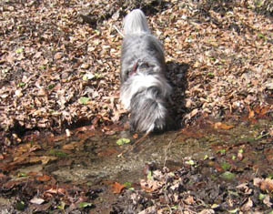 Frauchen meinte, mit einem Jahr dürfte ich mir nun auch schon mal nasse Füsse beim Spielen am Bach holen. Also lockte sie mich ganz tricky mit Stöckchen ins Wasser. Gut gemeint, Frauchen - aber da bin ich doch noch etwas vorsichtig. Weiß ich denn, wie reißend so ein Wasser sein kann? Und so fischte ich am Ende das Stöckchen ganz trockenen Fußes heraus - als PON ist man eben superpfiffig. Und Ihr wisst doch, spätestens die Ostseewellen werden mich wieder in übermütige Badelaune versetzen.
