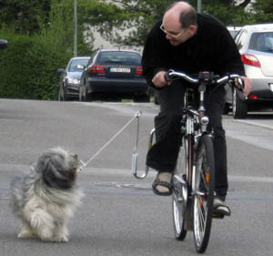 Also fix die Leine geholt, Frauchen und Herrchen Bescheid gesagt und dann machte Rainer meine Leine am Fahrrad fest.