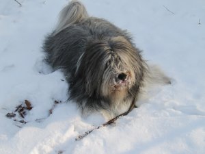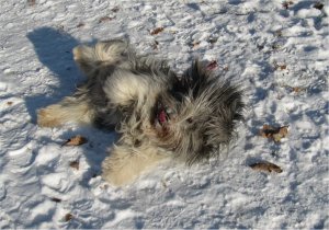 Oh, nun ist schon wieder Winter geworden und auf meinen Wegen im Wald liegt wieder lauter so weißes Zeugs herum. Aber total glatt und flockig ist das und ich liebe es, darin herum zu kugeln.