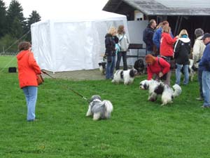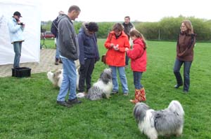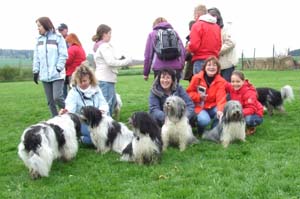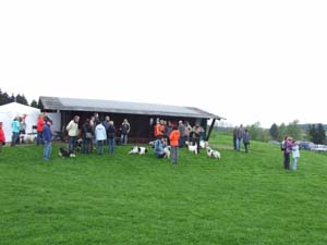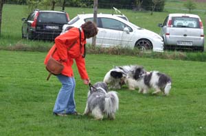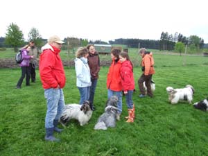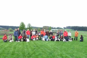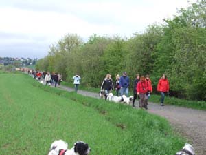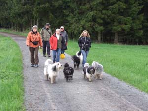 Als erstes brach das Riesenrudel nach dem Kennen lernen zu einem PON-Spaziergang rund um die Hundehütte auf. Eine lange Prozession, allerdings nicht gerade feierlich still... Über die Felder schallten muntere Hundekommandos und fröhliches Hundegebell.