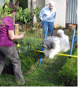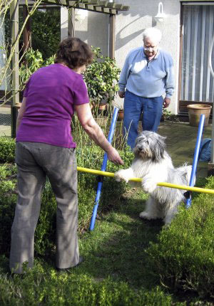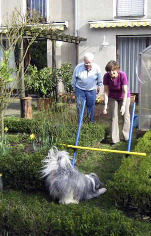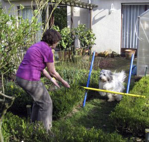 Mio, 2 Jahre - das richtige Alter für Agility. Ab heute wird gesprungen und Slalom gerannt. Komm in den Garten, ich zeige dir, wie es geht.