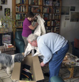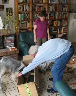 Ich habe Frauchen, Herrchen und Rainer zum Kaffeeklatsch eingeladen. Ich wusste, dass da irgendetwas in der Luft lag, denn es war ein riesiges Paket angekommen. Riesige Pakete sind immer für mich, das weiß ich schon...