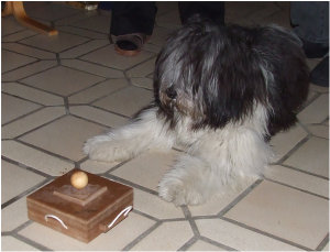 Sophie sagt, wenn man alle Schubladen und das Geheimfach durchprobiert und einen guten Tag erwischt, kann man darin ein Leckerli finden. Ob das stimmt?