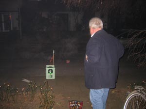 Herrchen war voll damit beschäftigt, supertolle lange Stöckchen in den Himmel zu schießen. Er hatte sich sogar eine Abschussrampe gebaut! Die Dinger explodierten am Himmel und waren doch tatsächlich lauter als meine schönste Krawalltüten-Belle. Dazu hinterließen sie einen mächtigen Qualm, der sogar bis in unseren Flur zog.