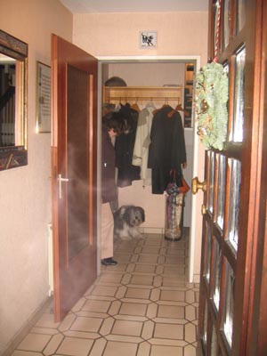 Keine Sorge Frauchen, das bisschen Zittern kommt nur von der Kälte. Sollen wir nicht einfach die Tür ein wenig zumachen?