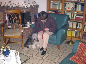Es fing damit an, dass Frauchen und Herrchen das Haus für Weihnachten und vor allem für den Besuch von meiner Mini-Chefin mit ihren Eltern aus Augsburg vorbereiteten. Ich wurde ganz hibbelig von all den Veränderungen und lief aufgeregt durch alle Zimmer. Frauchen sagte: Kleiner Mio, bevor du uns vor Weihnachten einen Herzkasper bekommst, darfst du noch einmal bei deinem Freund Rainer übernachten. So etwas lasse ich mir nicht zweimal sagen: Fix die Sachen zusammengepackt, ab mit Frauchen ins Auto und zu meinem Freund. Dort machten wir uns einen total gemütlichen Vor-Weihnachtsabend: